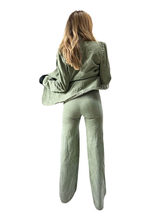Vintage 70s suit 2 piece green denim flares unisex men's